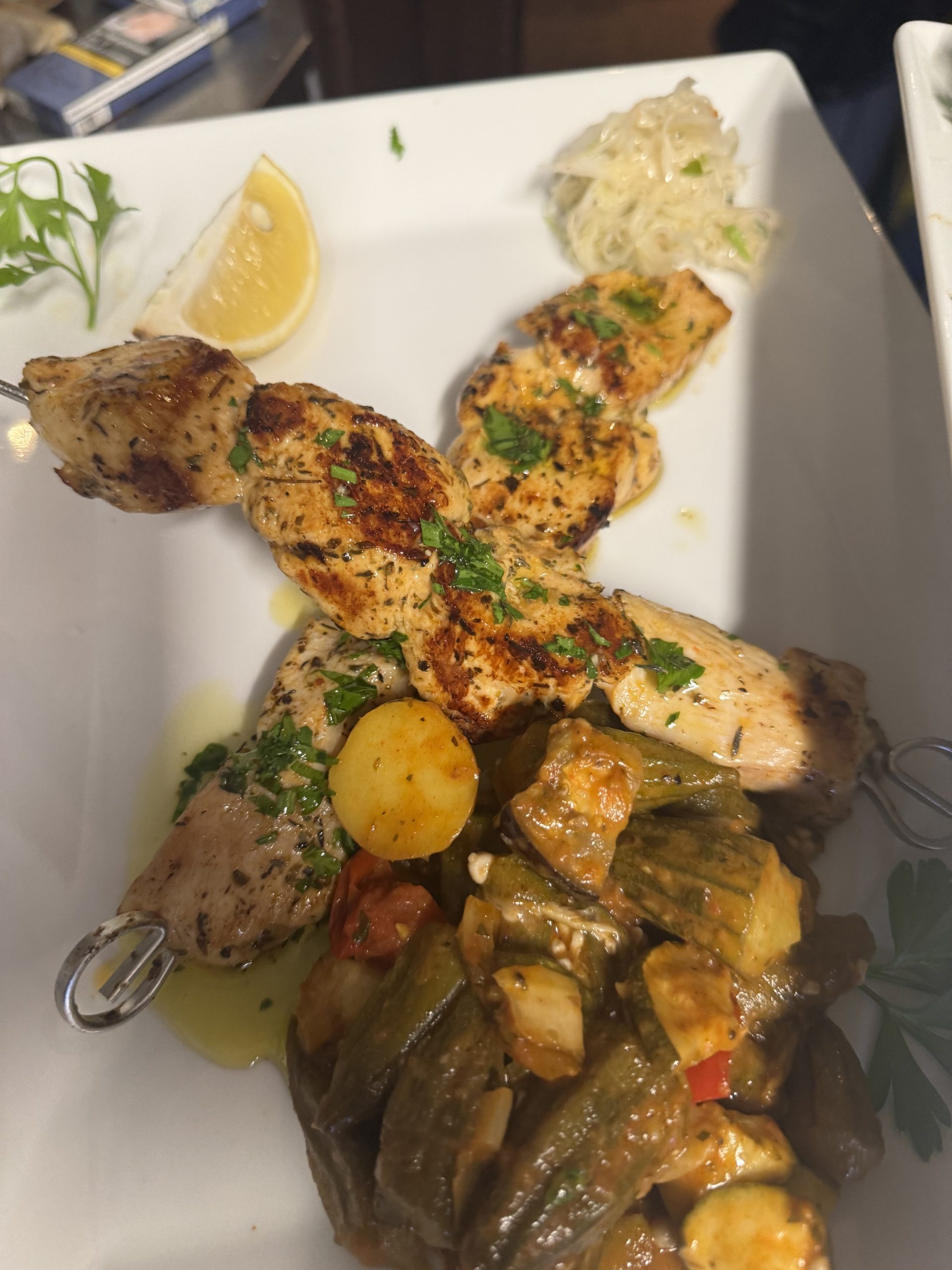Unsere saftigen Souvlaki sind mehr als nur Fleischspieße – sie sind ein Stück authentische griechische Grillkunst. Nach dem Rezept von Mama Elena marinieren wir ausgewähltes Fleisch in einer aromareichen Mischung aus bestem Olivenöl, mediterranen Kräutern und unserer geheimen Gewürzmischung. Unser Suflaki werden von unseren Köchen auf den Punkt gegrillt, sodass sich außen eine würzige Kruste bildet, während das Fleisch innen perfekt saftig bleibt.